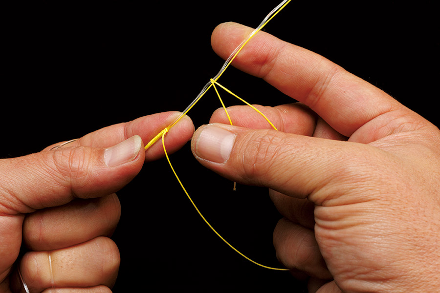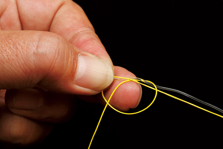 06 リーダーの先端を本線に絡ませてから、05で作った隙間に通す。