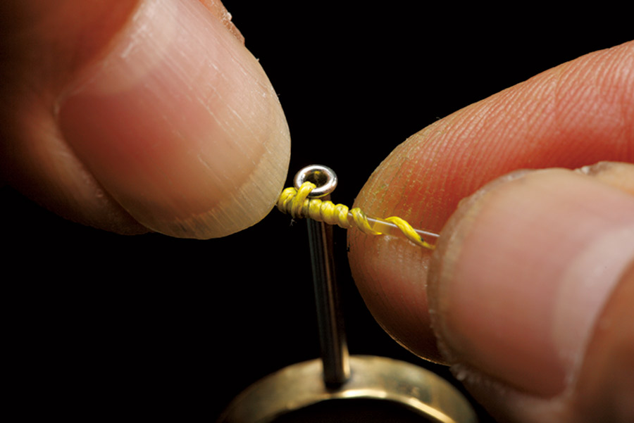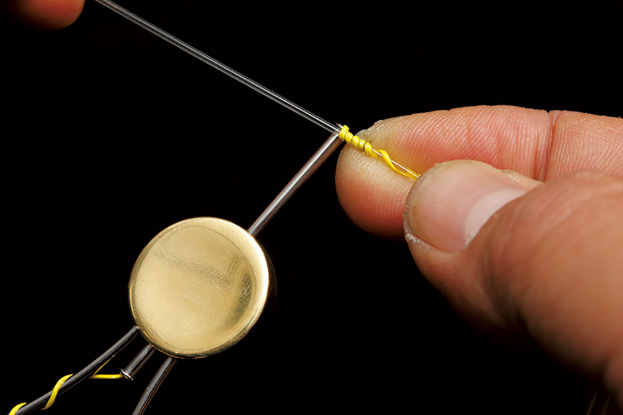 02 本線に3~4回、リーダーの先端部分を巻く。