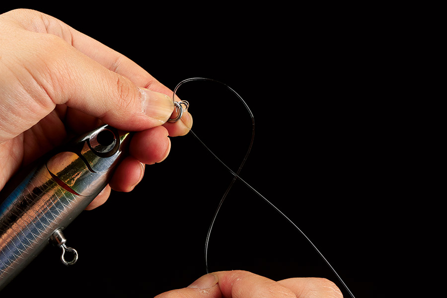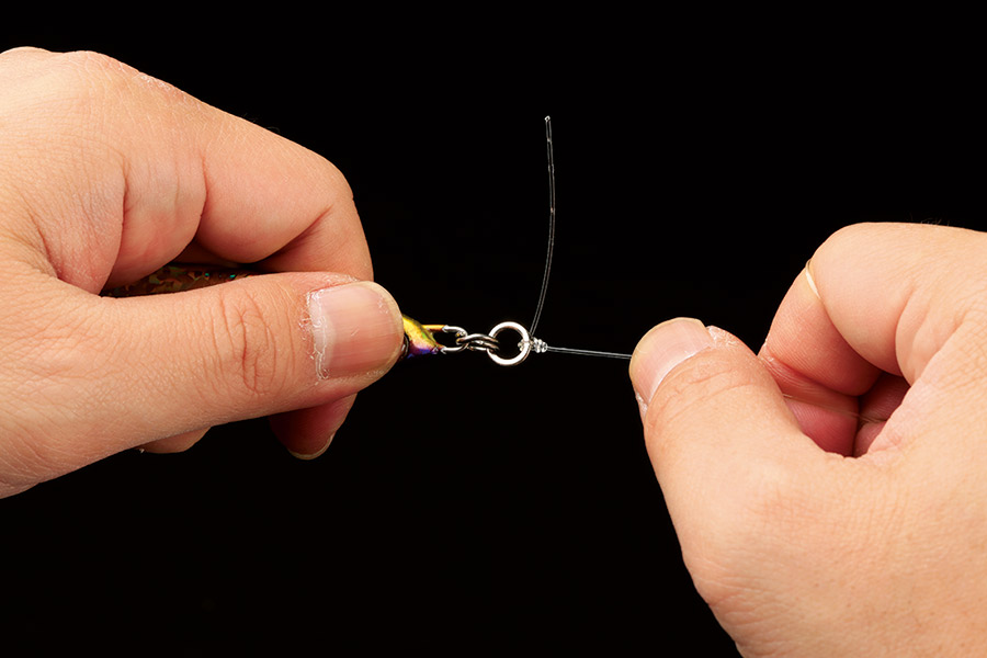 01 結びたいルアーアイやリングにリーダーを通す。