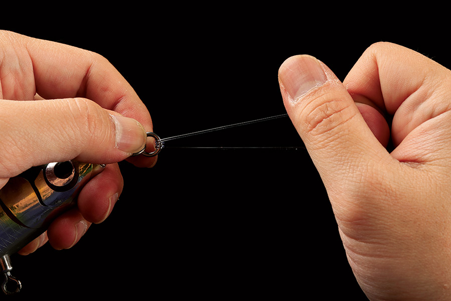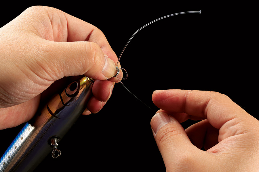 クリンチノットは、ジグのアイやリング類にリーダーを装着する際に、最も簡単といえるノットのひとつ。ルアーゲームの基本となるノットである。ライトなターゲットを狙うときに使用したい。