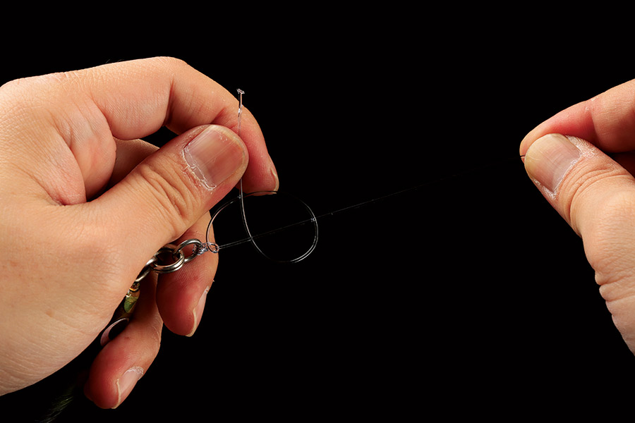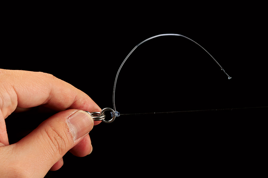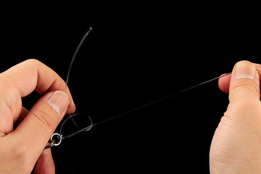 03 リーダーの先端を、アイやリング側にできた輪に通す。