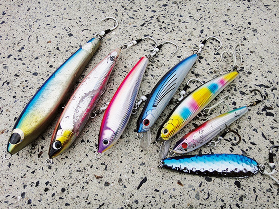 ▲ポッパーとともに、もちろんペンシル系も用意。ベイトサイズによって対応できるように、150㎜ から220㎜ ほどまで持ち込む。
