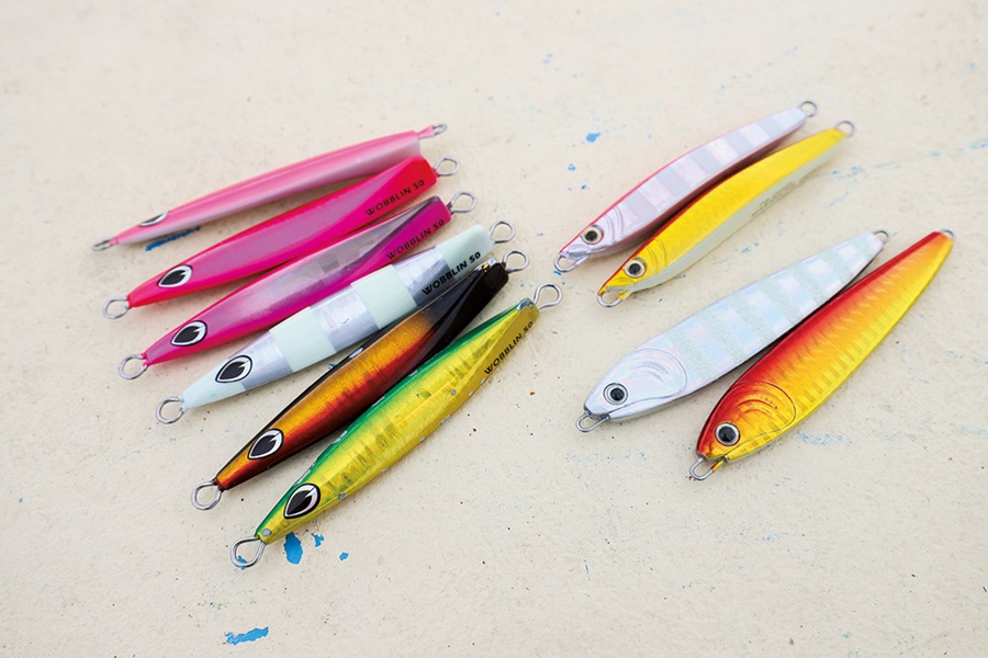 たとえば、左右非対称のウォブリンはジグを横に向けやすく、その後のバックスライドが秀逸。ただ巻きでは、その名の通り細かいウォブリングアクションでアピールする。そのような特性により、イサキ狙いではイサキがベイトを追っている状況でとくに効果的という。