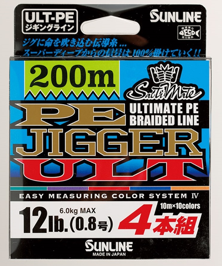 中村さんがスーパーライトジギングで使用するラインは、サンラインの「PE JIGGER ULT」の4本組と8本組の2種類。