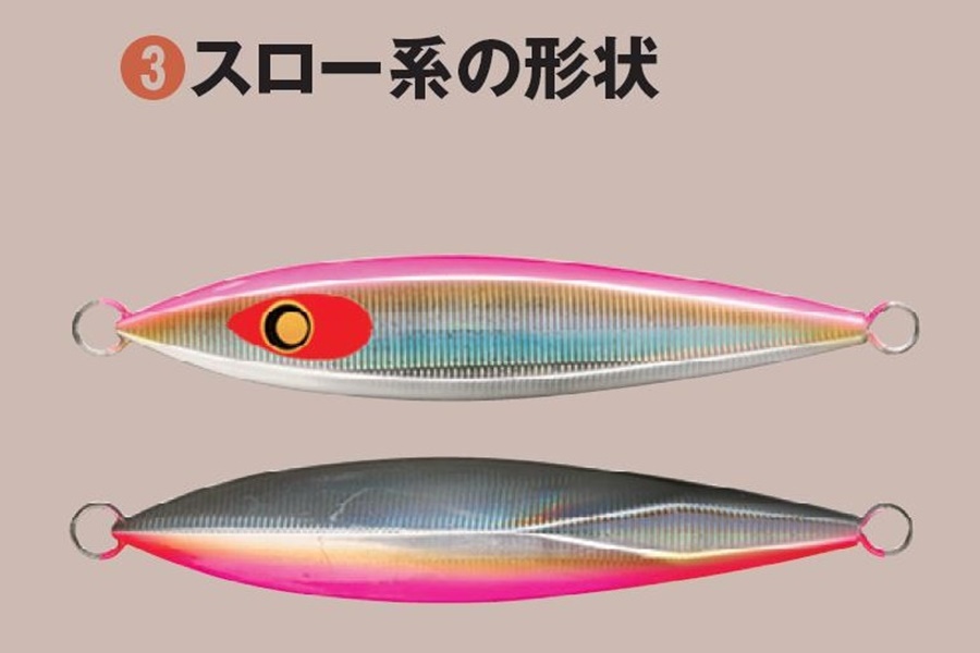 また水深や潮の速さだけでなく、前述したようにベイトの大きさによって変わることもある。大きなベイトフィッシュを捕食している状況であれば、あえてシルエットの大きいジグをセレクトすることもある。逆に小さいベイトを捕食しているようなら、ジグのシルエットを小さくして対応する場合もある。