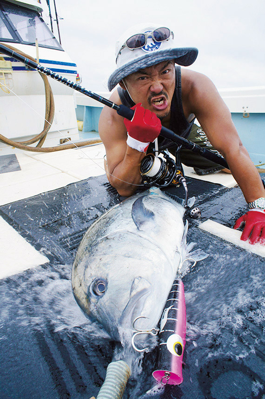 ▲GTフィッシングにはGT専用タックルを使用すべき、というのが大久保の持論。自らはPE12号を軸として、極端なビッグフィッシュ狙いの道具立てで挑んでいる。