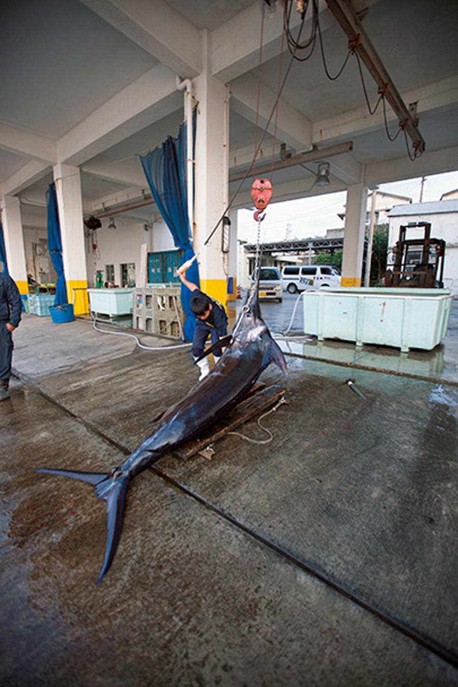 ▲カジキが水揚げされる光景は日常茶飯事。ルアーでトライする釣り人もいる。