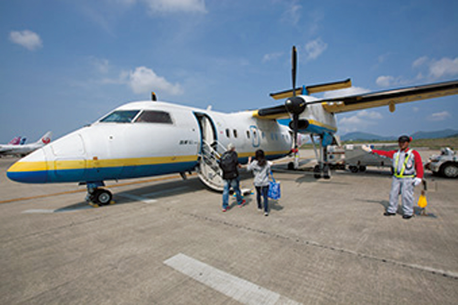 与那国島には沖縄本島の那覇空港から与那国空港への航空便を利用するのが一般的だ。那覇~与那国便はJALグループのRAC(琉球エアーコミューター)が一日一便運航している。また、那覇から石垣島に渡り、そこから航空便、もしくはフェリーで移動することも可能。石垣~与那国便はRACが一日三便運航。所要時間は那覇~与那国が約1時間30分、石垣~与那国が約30分。