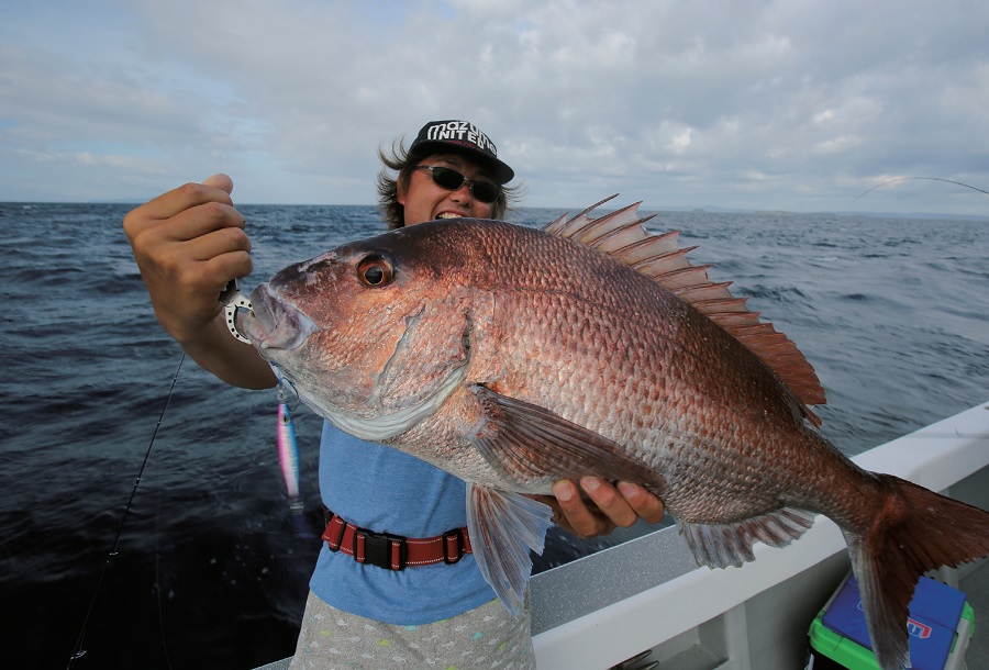 ▲ベイトに着いたマダイは良型が多い。マダイはスーパーライトジギングの重要なターゲットだ。