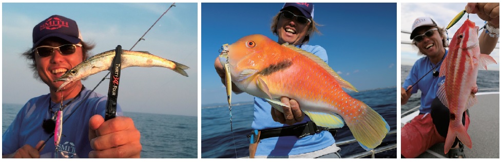 ▲小さなジグは多くの魚たちを魅了する。これもスーパーライトジギングのひとつの大きな魅力だ。オジサンことヒメジの仲間、巨大イラ、そしてカマス。