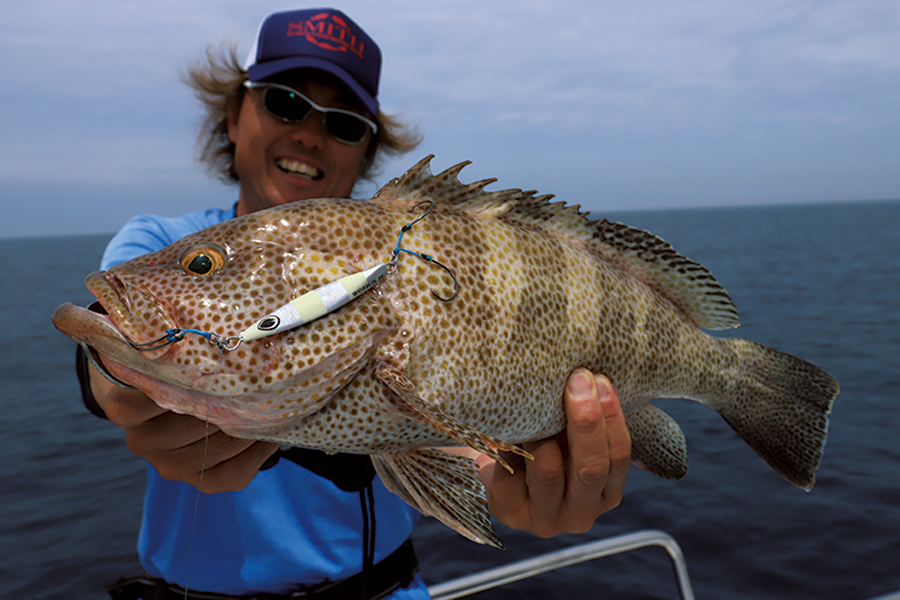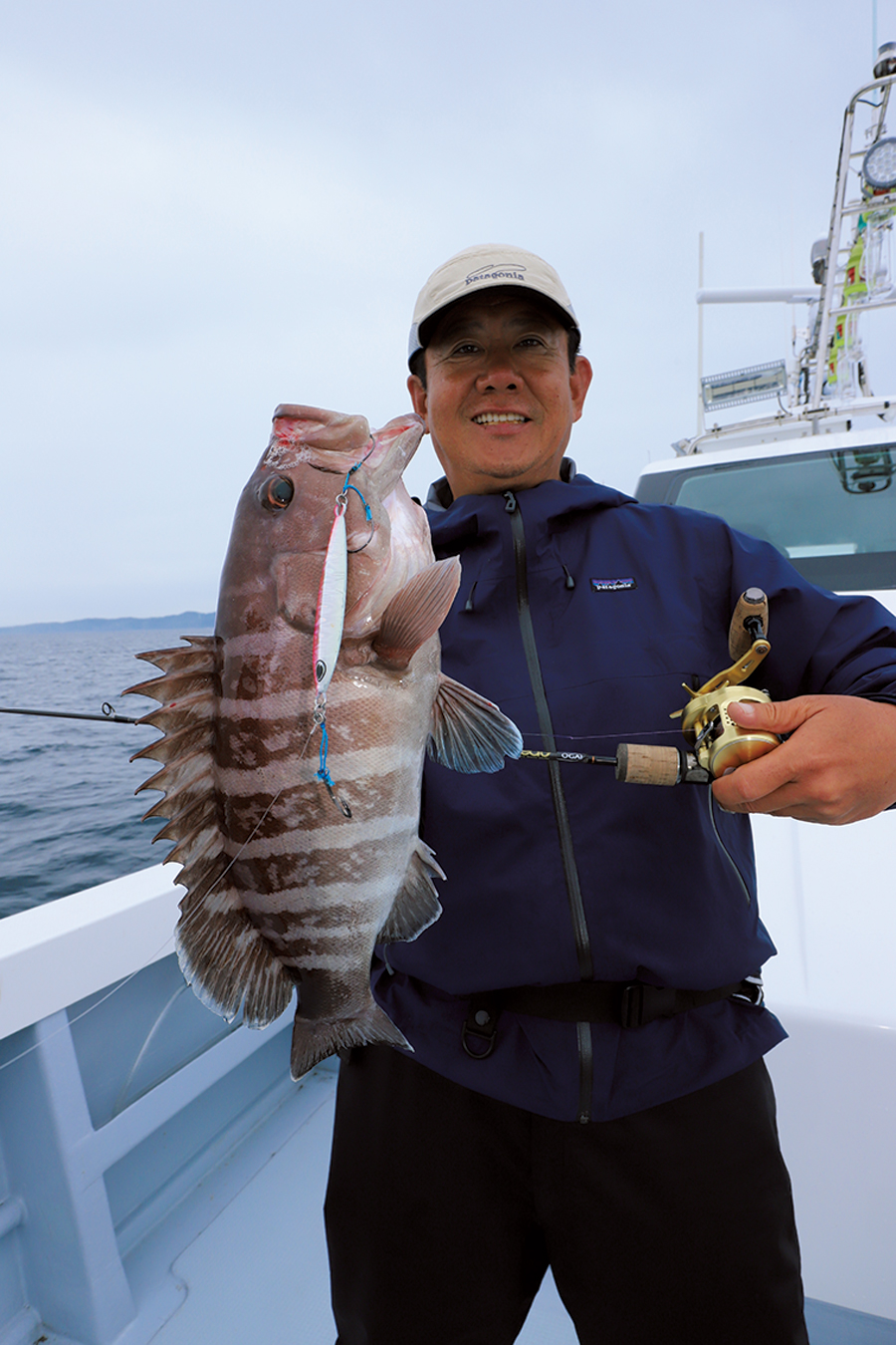 ▲スローピッチのエキスパートでもある大貝さんだけあって、根魚はお手のもの! これはマハタ。