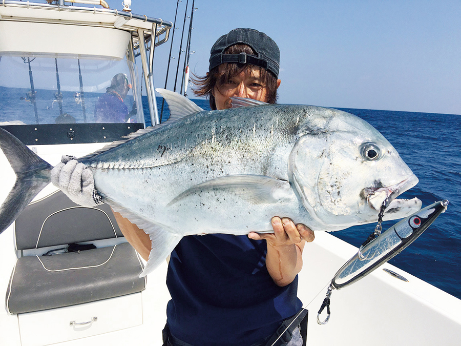 ちなみにサイズとしては、最大で40kg前後。平均サイズは20~25kg。沖縄本島やトカラなどと比べれば、大型のキャッチは少ない。しかしこれは、浅いポイントが多く、キャッチできていないだけかもしれないとのこと。掛かった瞬間になすすべなく終わることもあるという。