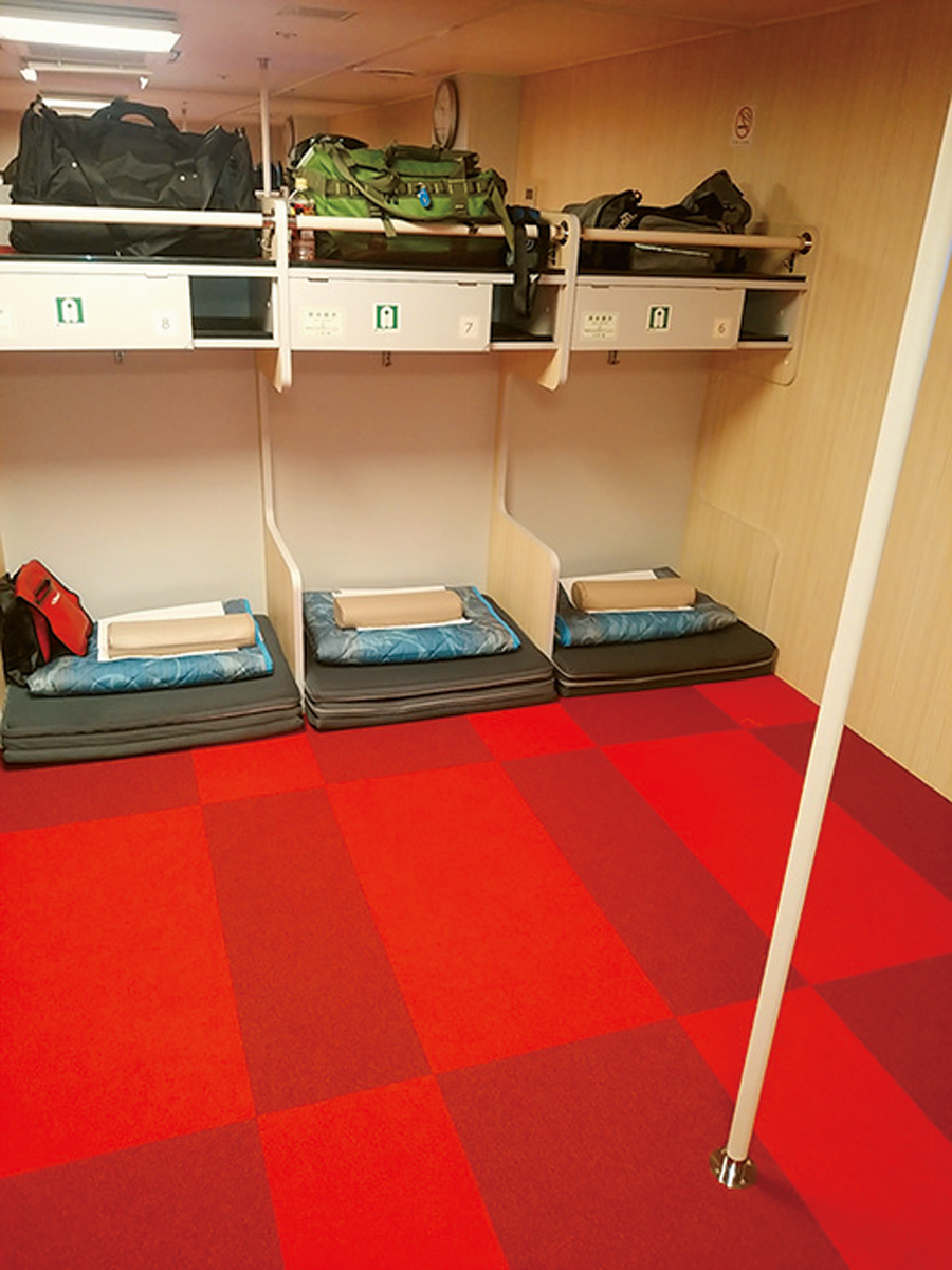 ▲船内は6つのグレードの部屋に分かれており、最もリーズナブルなのが2等和室。