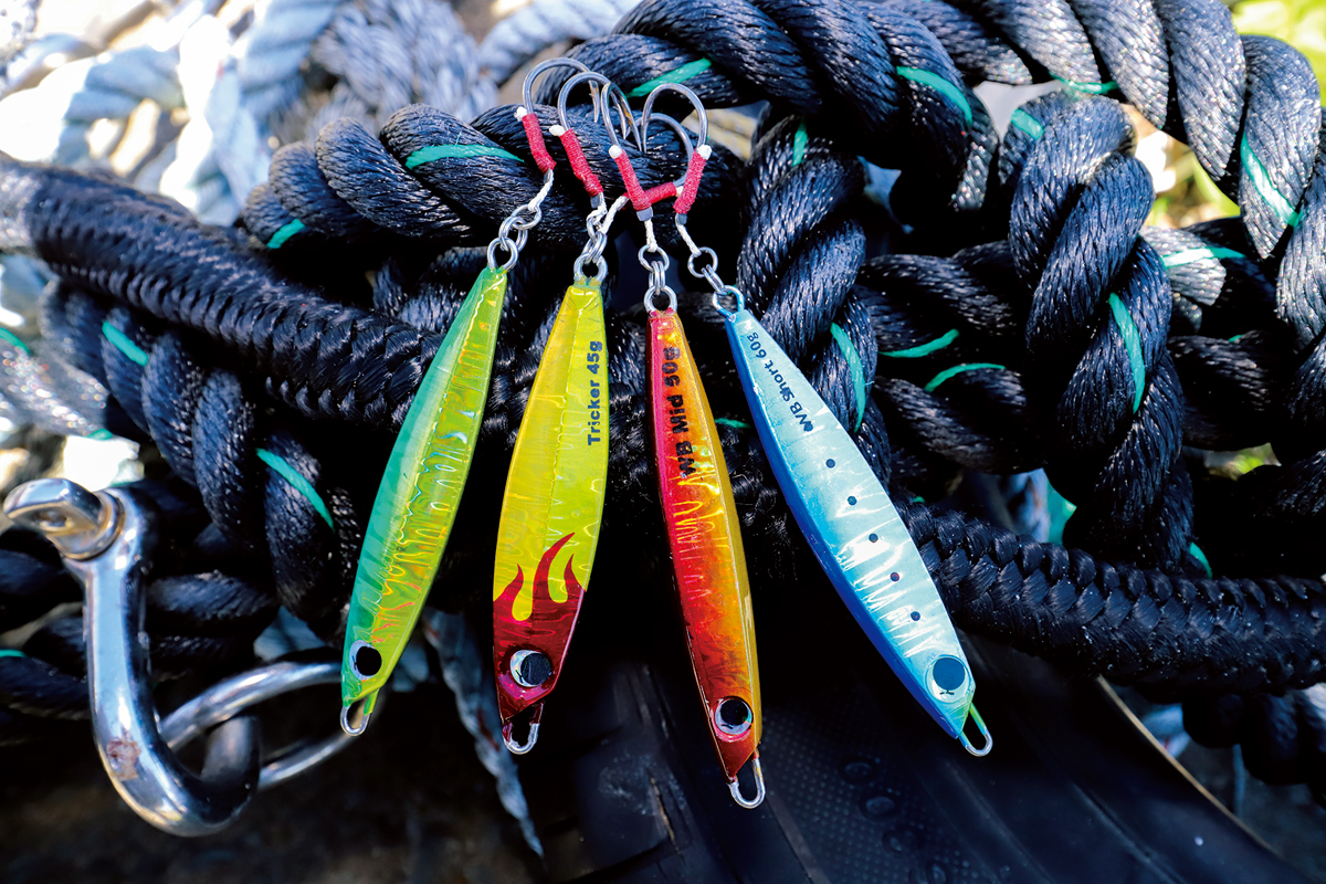 メタルジグ:メロン屋工房・トリッカー2 45~55g、トリッカースリム(プロト)50~60g、ウィークベイトMID50g、ウィークベイトショート40~60g
