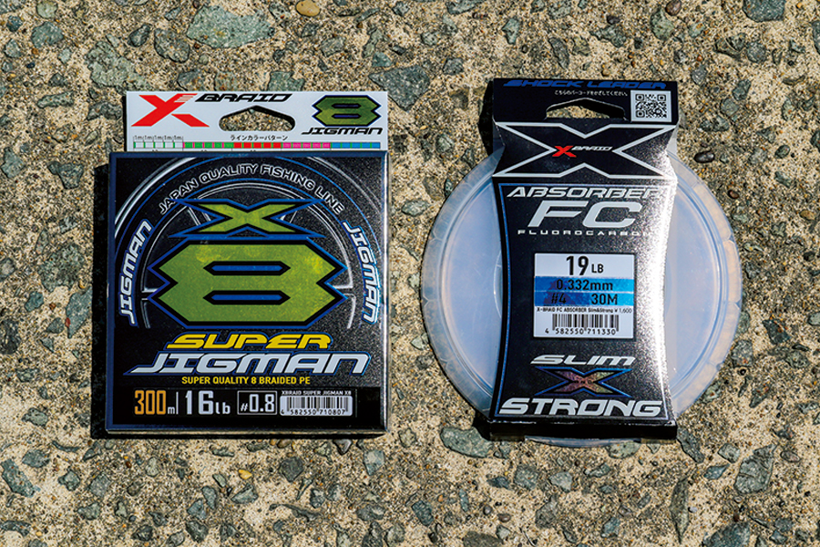 ▲PEとリーダーはXブレイド製。PEは0.8号、リーダーは4号。スーパーライトジギング定番セッティング。