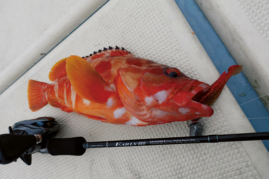 この釣行で使用したロッドは近海のボートゲームに特化した「アーリー・フォーボート」2機種。幅広いキャスティングゲームに対応するスピニングモデルの68Mと、サーフェスからボトムまで高レスポンスなゲーム展開を得意とするベイトの610MH/B、いずれも近海の小型回遊魚、シーバス、ロックフィッシュを小型船から狙うゲームに最適だ。
