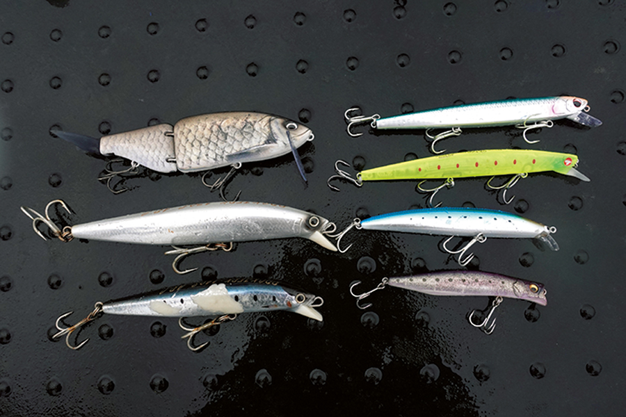 ▲ルアーはワームでスイミングテンヤ25~40g、テキサスリグ28g前後を使用。他にメタルジグ、バイブレーション、スピンテール、プラグ各種を使用した。