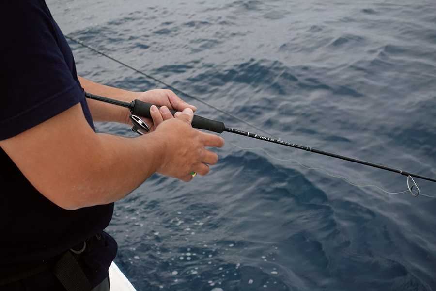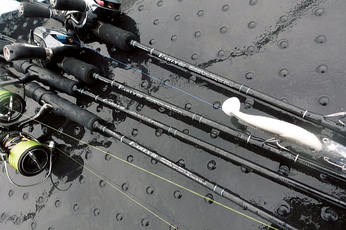 この釣行で使用したロッドは近海のボートゲームに特化した「アーリー・フォーボート」2機種。幅広いキャスティングゲームに対応するスピニングモデルの68Mと、サーフェスからボトムまで高レスポンスなゲーム展開を得意とするベイトの610MH/B、いずれも近海の小型回遊魚、シーバス、ロックフィッシュを小型船から狙うゲームに最適だ。