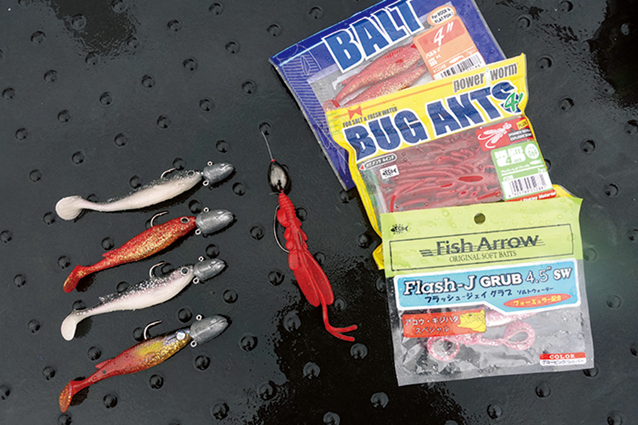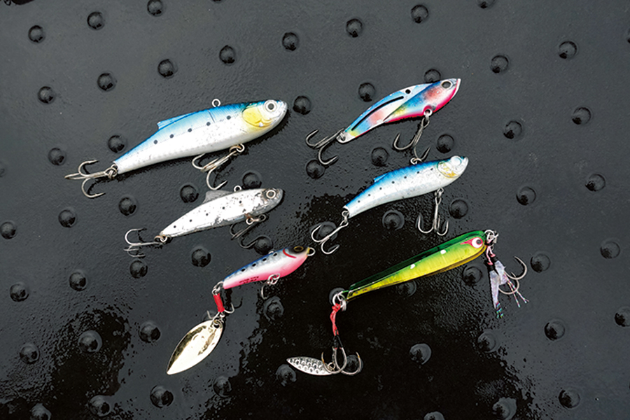 ▲ルアーはワームでスイミングテンヤ25~40g、テキサスリグ28g前後を使用。他にメタルジグ、バイブレーション、スピンテール、プラグ各種を使用した。