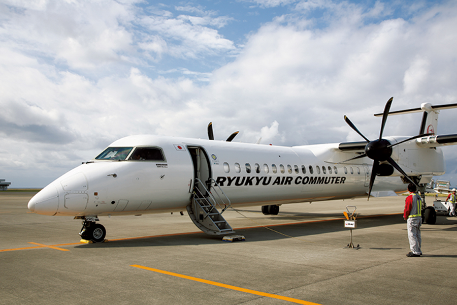本土から久米島へのアクセスは大きく2パターン。飛行機利用の場合は、夏のハイシーズンになれば羽田からは直行便が運行されるが、それ以外の季節や他の空港からは那覇経由となる。那覇から久米島まではプロペラ機でもたったの30分とアッという間だ。もうひとつの手段は船。那覇の泊港から、久米島直行または渡名喜島経由で一日2便フェリーが就航している。直行便で3時間前後、経由便で4時間程度の船旅だ(船の種類によって異なる)。