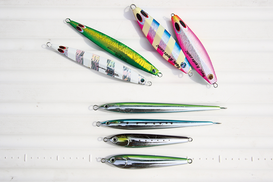 ▲横島さんは、ジグは200~300gをメインに用意。巻き上げメインで誘うスキルジグ、フォールメインで誘う2WAYスパイキー、2WAYスパイキー・タフを使用。