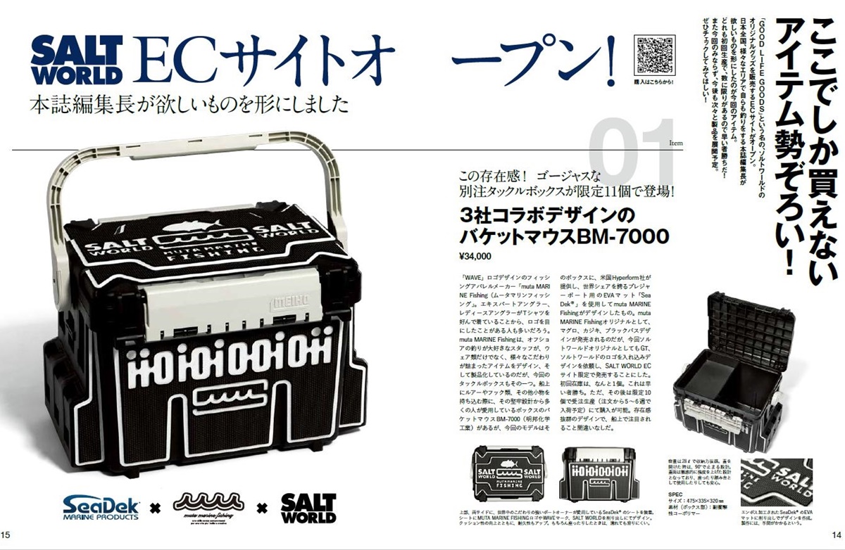 加えて、今号は巻頭には、ソルトワールドECサイトのオープン情報を掲載しています。こちらで、メーカーとコラボで製作したオリジナルオリジナルアイテムを紹介しています。もちろん購入可能です。コラボルアーは実績十分。販売数に限りがありますので、気になる人はすぐにチェックすることをおススメします。