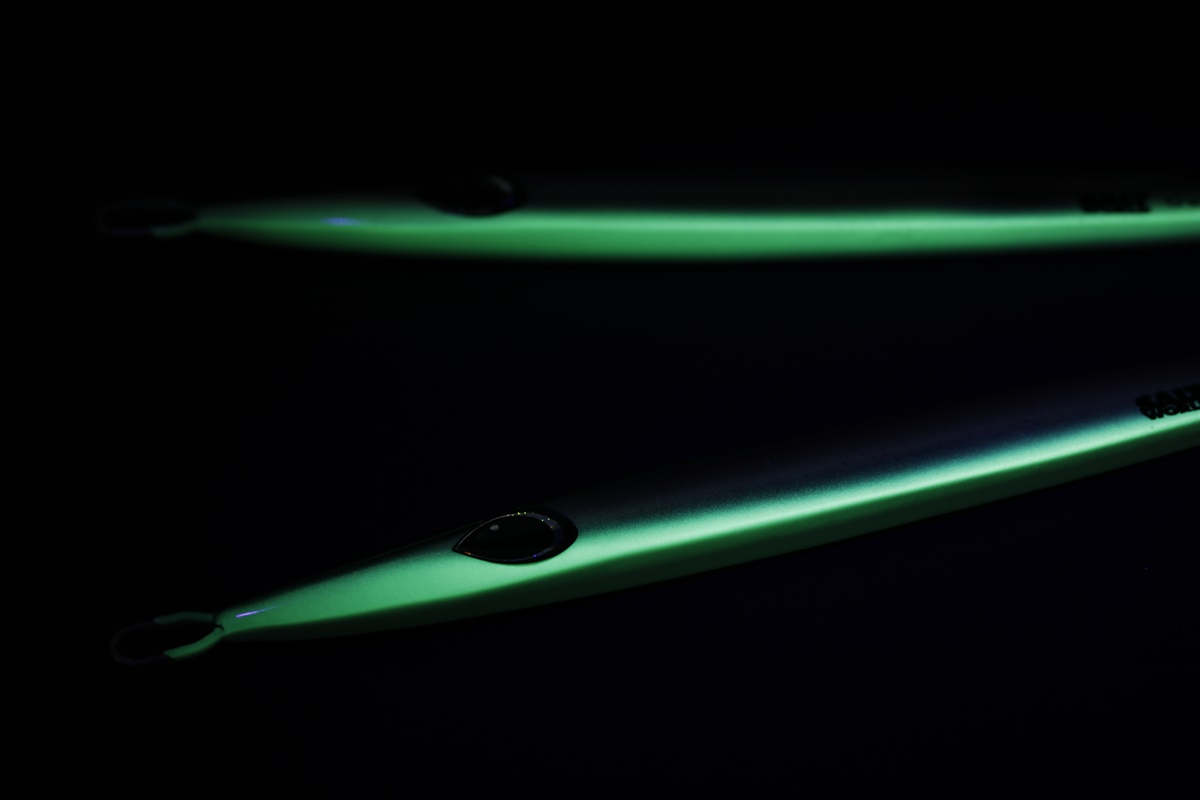 ▲各モデル、腹側にグローを配色。光量の少ない深場、濁り潮などで存在感をアピールする。