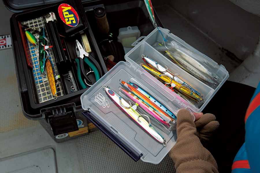 ▲ジグはすべてディープライナー製。SPY-FIVE、SPY、SPY-NARROW、スピンドルNARROW、SPY-Cなどを用意。多用したのはSPYFIVE130g、SPY140gなど。