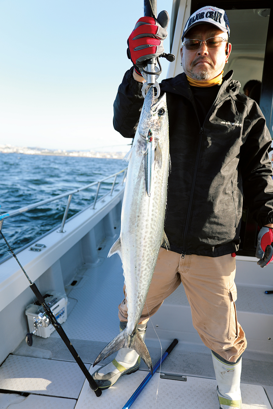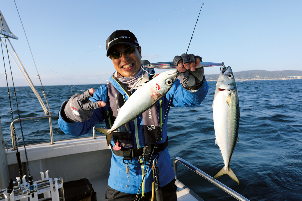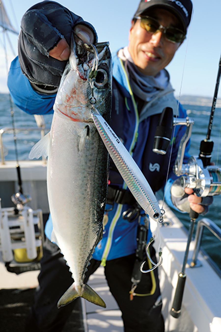 「今回は時期的に早いんですが、タチウオパターン。タチウオ系のジグが出るので、いわゆるマッチザベイトですね。それとジグパラバーチカルの重いウエイト。魚種は旬のサワラと青物、サイズ的にはメジロかな」