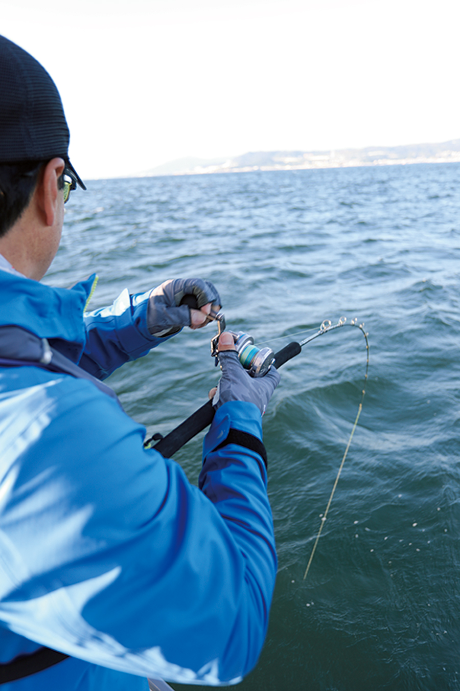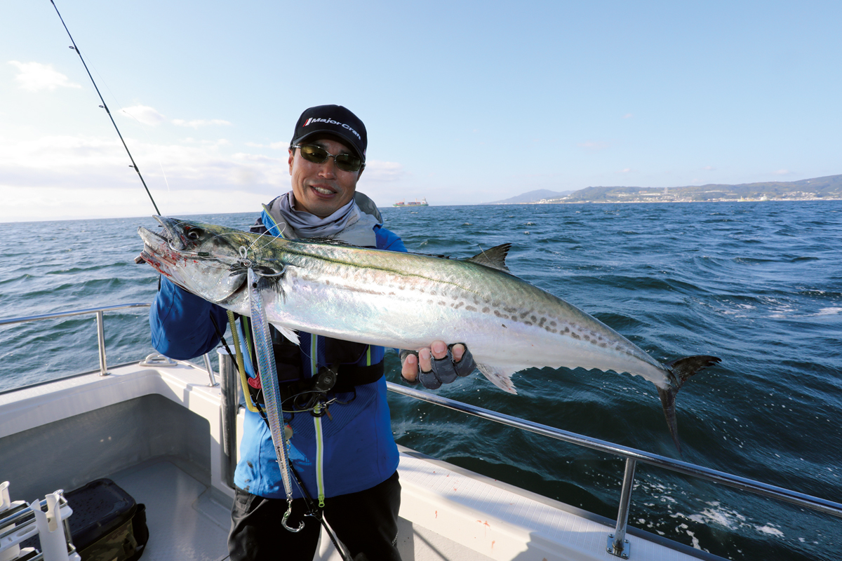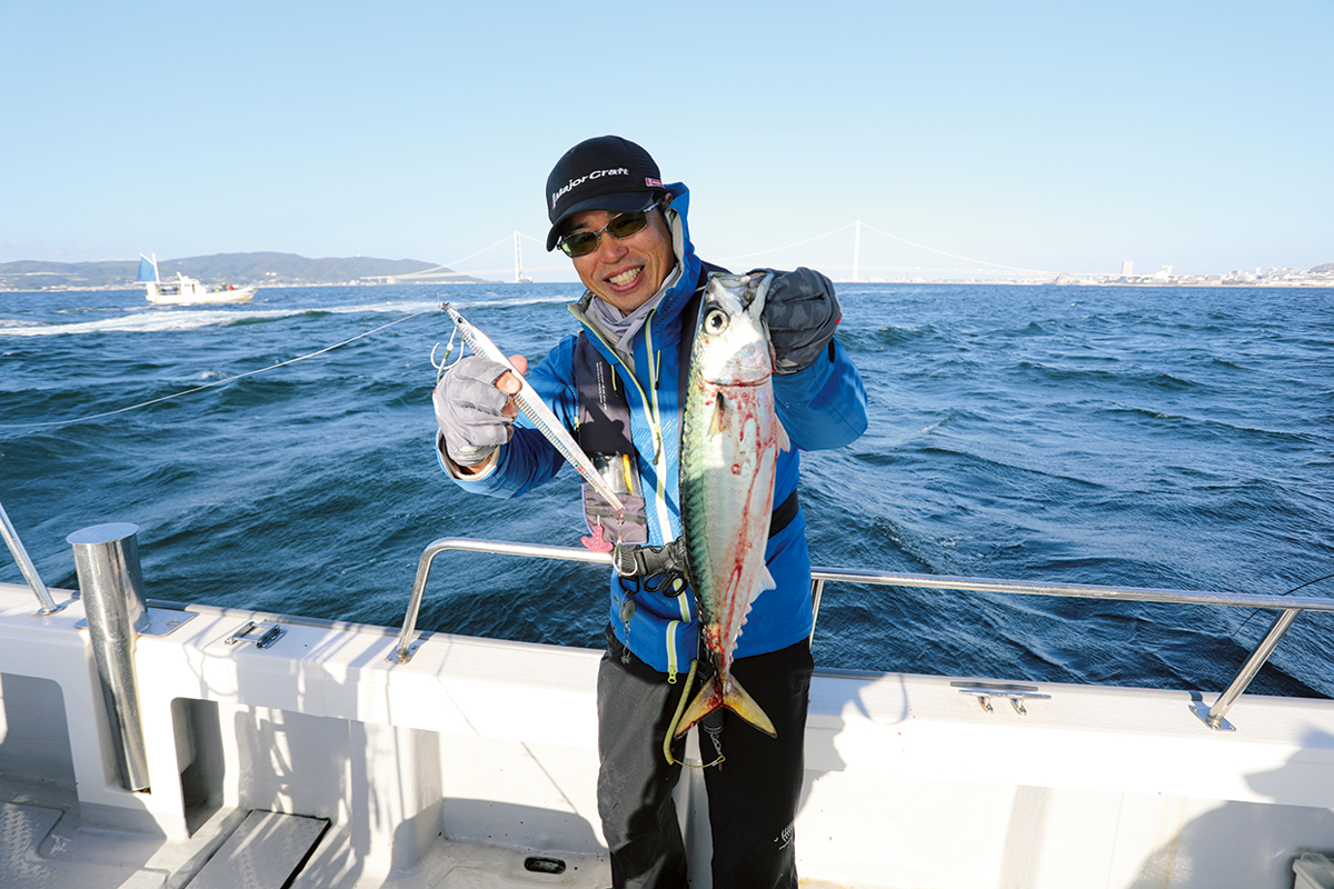 中川和人船長の操るビッグファイター号で向かったのは明石海峡。水深は浅いが潮の流れが速く、ヘビーウエイトのジグにはベストなエリアだ。