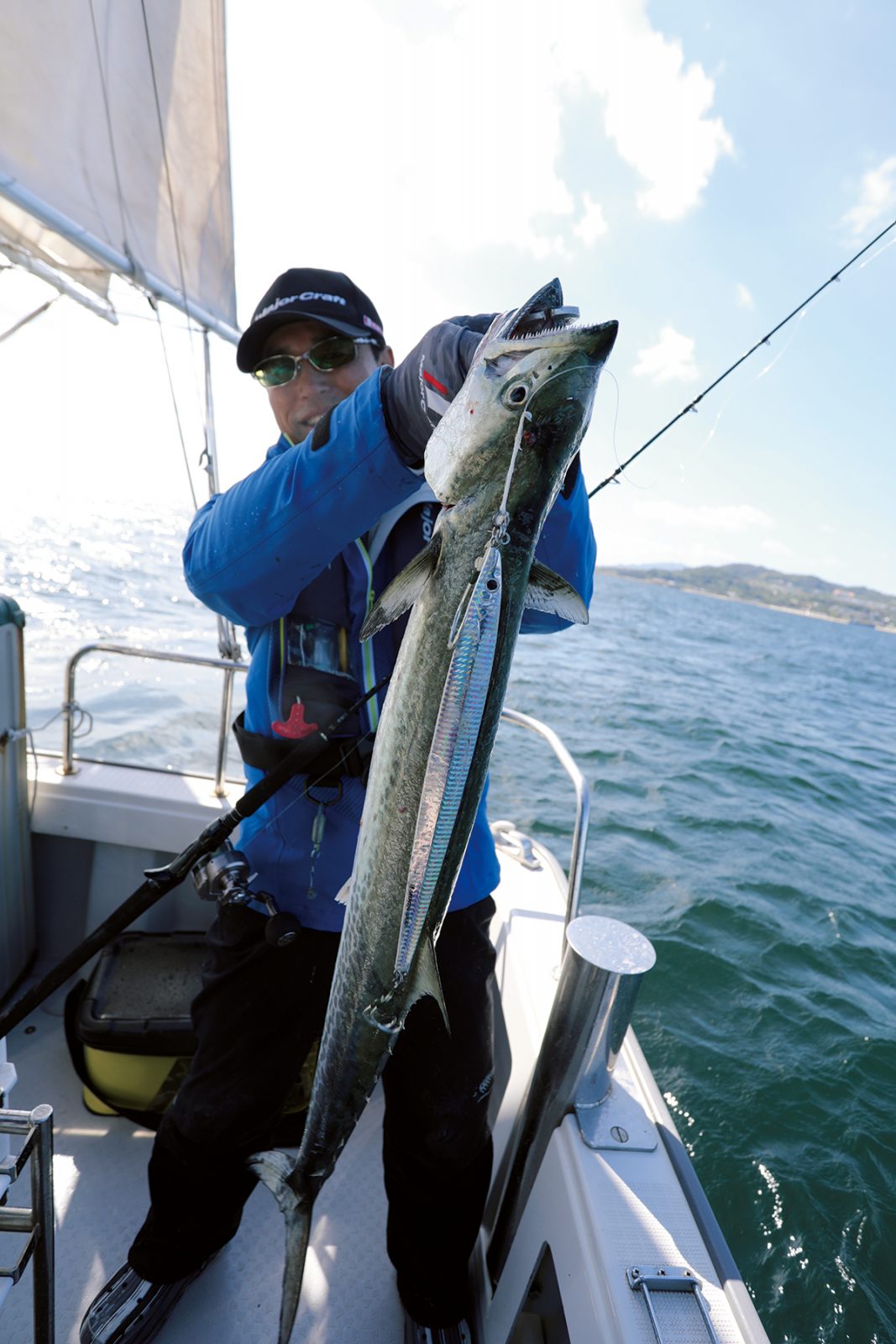 今回のタチウオパターンのように、ターゲットが捕食するエサに合わせていく釣法。「本来ならタチウオの新子を食べてるはずなんですけど、いまここにはほとんどいないんですよ」と中川船長が言うように、季節はもちろん、場所ごとにもマッチさせていく必要がある。ジグの外見だけではなく動きで合わせることもできる。