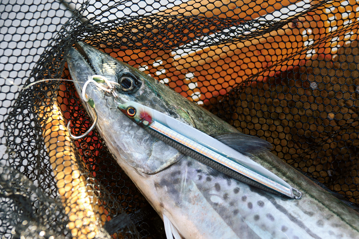 そんな柔軟な発想でタチウオ系ジグのメタルドラゴンを駆使しサワラを捕獲。ジグパラでも捕獲に成功する。