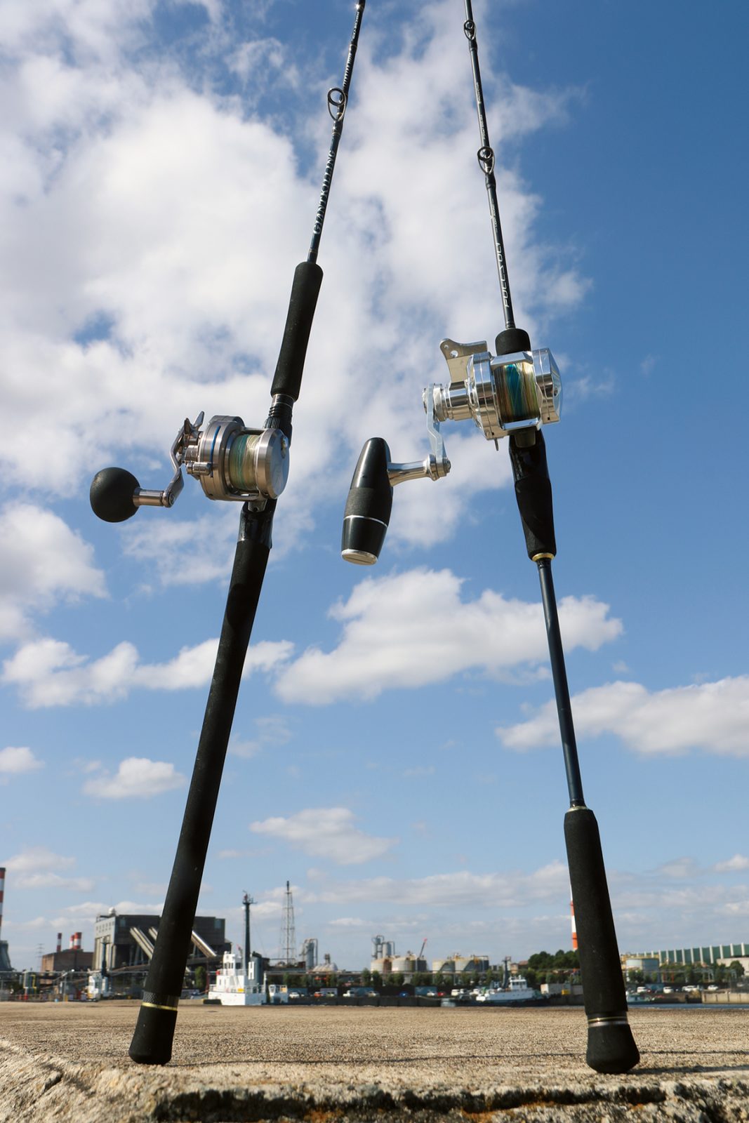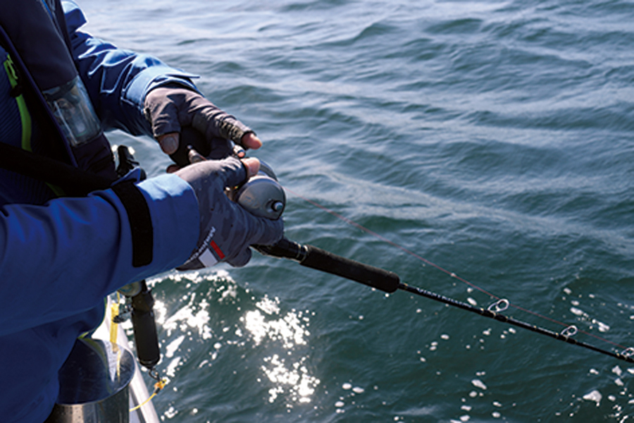 ▲バーチカルな釣りなので手返しのよいベイトをチョイス。操作性とファイトのしやすさを兼ね備えた長さでベーシックなジャイアントキリングと、トルクのあるブランクでやりとりが楽しいフルソリとで今回は使い分けたが、逆にしても問題はない。