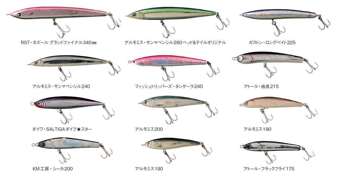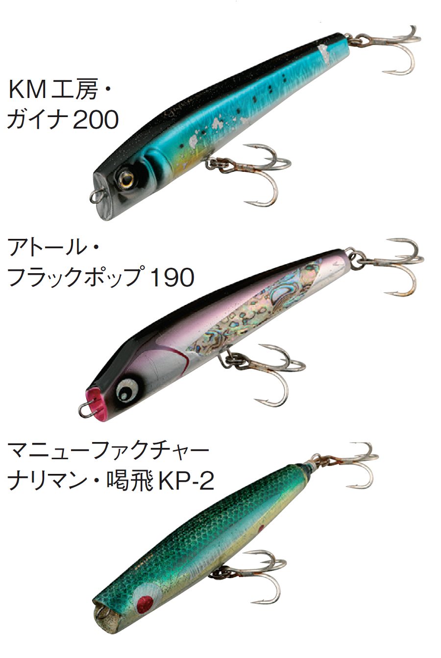 メインベイトはイワシだが、ムロアジやツムブリを捕食している状況、トビウオを追っている状況もあるという。そして大きいベイトを捕食している時は、特にトップウォータープラグにも反応が良いとのこと。