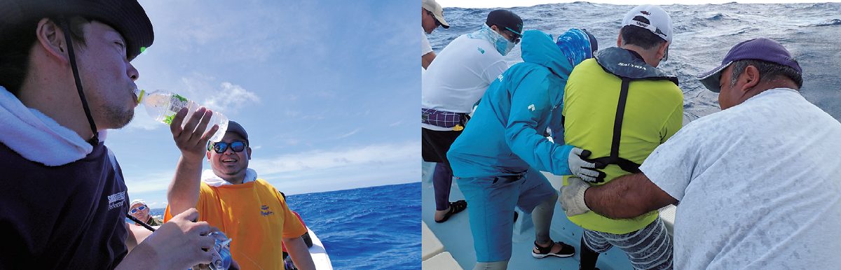 船釣りでのビッグフィッシュゲームは、チームプレーなくして成立しない。これは沖縄本島の遊漁船『ゆりか』の荻堂船長に教えられた言葉である。乗船時のタックル積み込みから始まり、ファイト時は掛けたアングラー、それをサポートする同船アングラー、そして船長が三位一体になり一本の大きな魚を獲る。