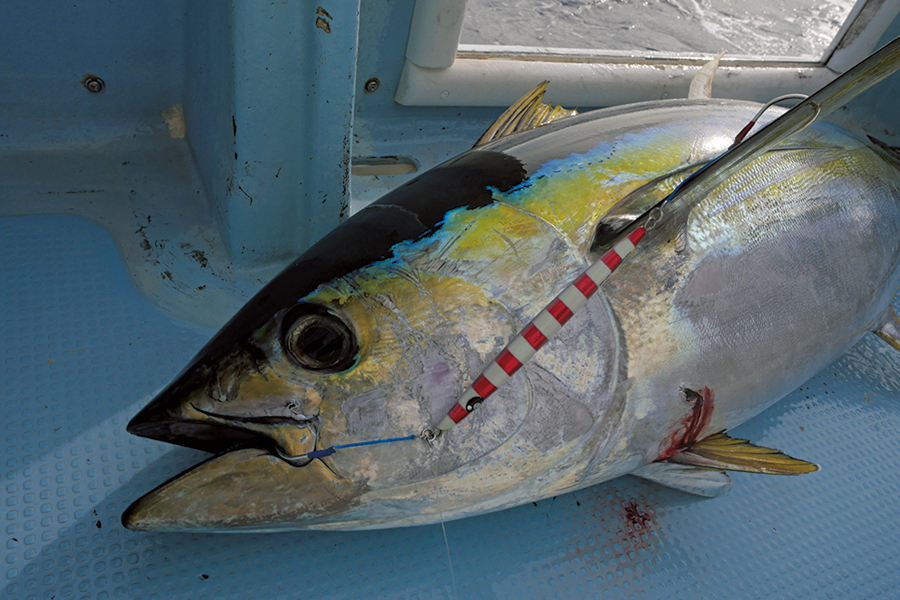 キハダのパラダイスとして知られる久米島においても、従来のジギングでは大型を狙って獲ることは難しかった。そこに風穴を開けたのがスローゲーム。突き詰めればフォールで喰わせるという単純明快な攻略法でありながら、その威力は絶大だ。