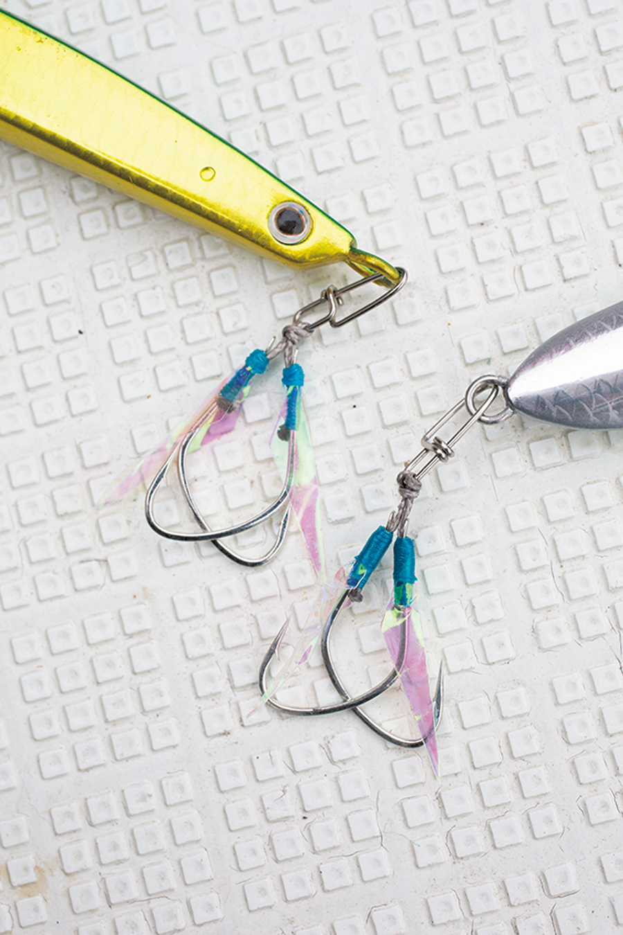 ちなみにマダイ狙いの場合、リアフックはマストアイテムとなる。イワシを喰っているパターンのときでも、リアフックを取ったらヒット率は激減する。フォールで喰ってくるときは必須、スイミングでも喰いやすい。リアフックがメインになるイメージだ。