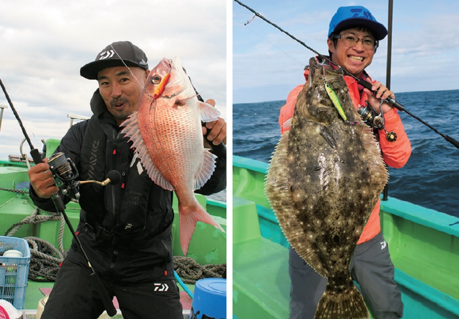 「鹿島沖は遠浅で、砂地、岩盤、魚礁、沈み根と様々なポイントがあり、スーパーライトでは水深30mほどの場所を探っていきます。起伏の激しい場所ではないので、根掛かりも少なく探りやすいですね。SLJはこの地でもやれると前々から思っていて、実際に試したところ、ばっちりハマりました。ちなみにマダイはほぼ周年狙えます。その他、ワカシ、イナダ、ワラサなどの青物、ヒラメ、ホウボウ、メバル、根魚など季節に応じて狙えるので、一年中SLJを楽しめますね」(栗山)