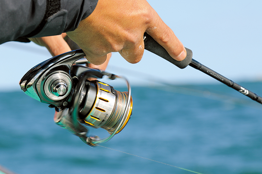 ▲キャストして着水後のサミングは必要不可欠。特に風が強い場合は、きちんとサミングしながら糸を送り出したい。そして根掛かりしないようにしっかりと着底を確認したい。
