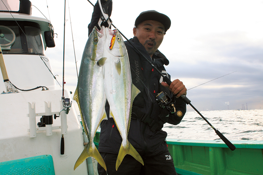 ▲ワカシ、イナダは、回遊と船の流しがリンクすると、パタパタとヒットしてくる。時には2匹ヒットすることも。
