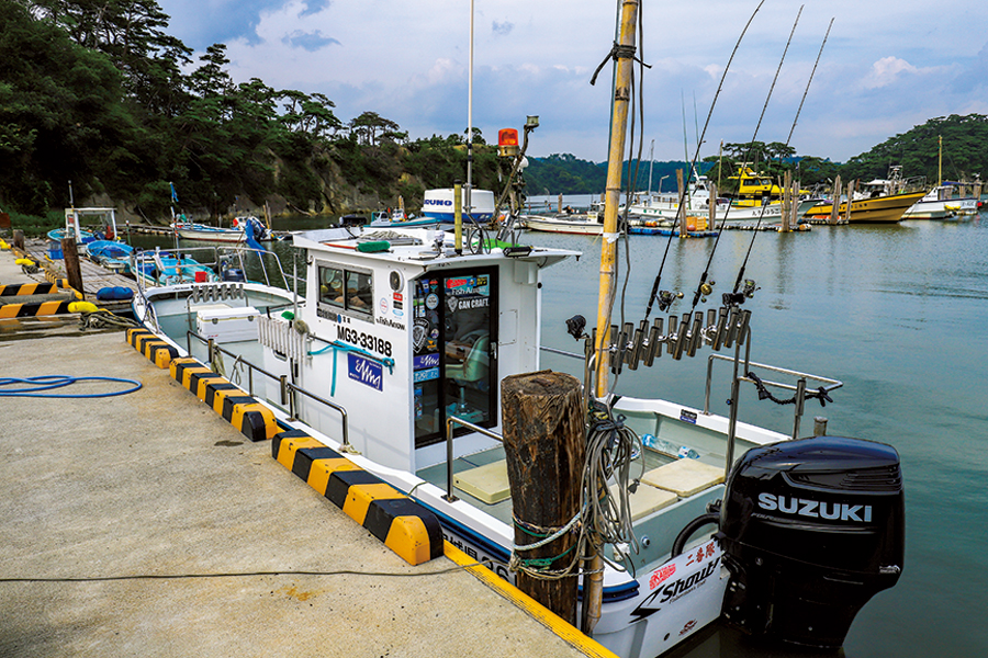 ▲舞台は宮城県仙台湾沖。船は塩竈市越ノ浦の「快星丸」。港のすぐ近くには日本三景の松島があり、根魚狙いでは金華サバで有名な金華山の沖も攻めた。美しい風景と豊かな漁場。最高のロケーションだ。