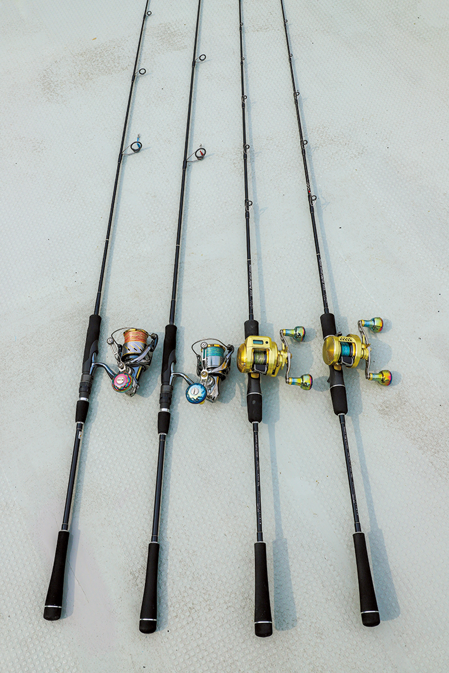 タックルは、基本的にはジグをキャストする状況ではスピニング、船を立てる状況やドテラ流しでもバーチカルに近い状態ではベイト、と使い分けている。