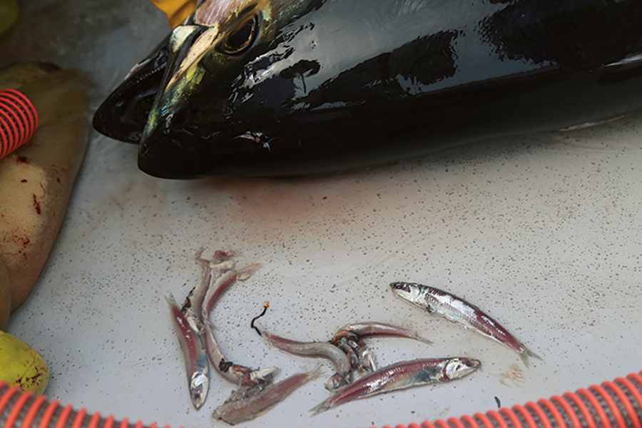 またそれによって、マグロ類がこのエリアでかなりバリエーションに富んだベイトを捕食していることも分かってきた。そのベイトの影響で水面に姿を見せたり見せなかったり、釣り方にも大きく影響するので、そこのところを少し考察してみた。