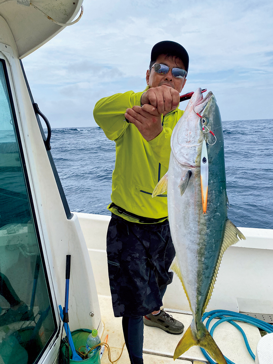 大きな和船でのジギングもダイナミックではあるが、喫水が低い分、水中で操作するメタルジグの躍動感などが大型船以上に伝わって来て、まるでハンターのようにブリを探し出しながらしゃくっている気になる。ジグの投入角度も船の流れを先読みし、ポイント(進行)方向へ先にジグを投入するのか、ジグを引き擦るような角度で投入し、しゃくるスピードに強弱を付けてコントロールしながら狙うか、そういったことも試してみる。なんせ、乗船しているアングラーはふたり。好きなように探らせてもらえるからだ。
