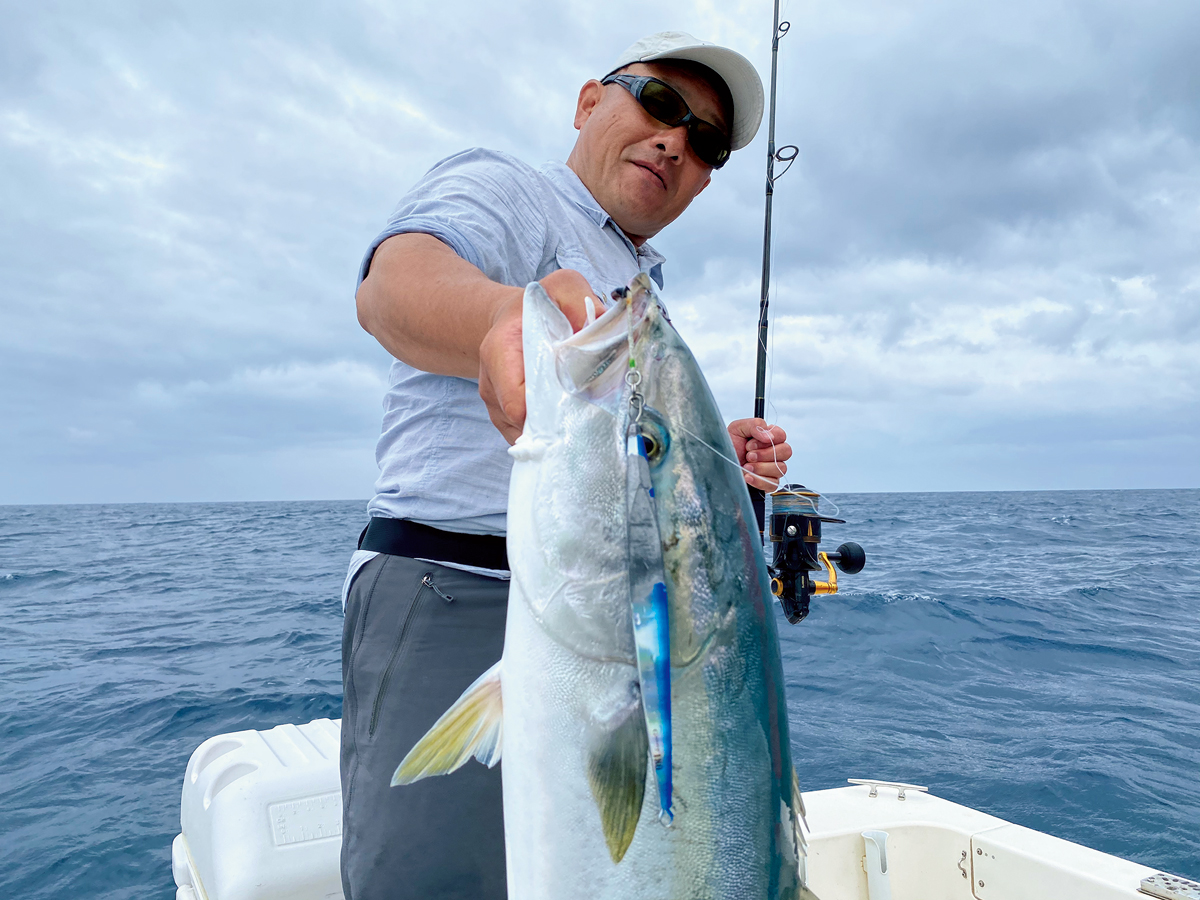 大きな和船でのジギングもダイナミックではあるが、喫水が低い分、水中で操作するメタルジグの躍動感などが大型船以上に伝わって来て、まるでハンターのようにブリを探し出しながらしゃくっている気になる。ジグの投入角度も船の流れを先読みし、ポイント(進行)方向へ先にジグを投入するのか、ジグを引き擦るような角度で投入し、しゃくるスピードに強弱を付けてコントロールしながら狙うか、そういったことも試してみる。なんせ、乗船しているアングラーはふたり。好きなように探らせてもらえるからだ。