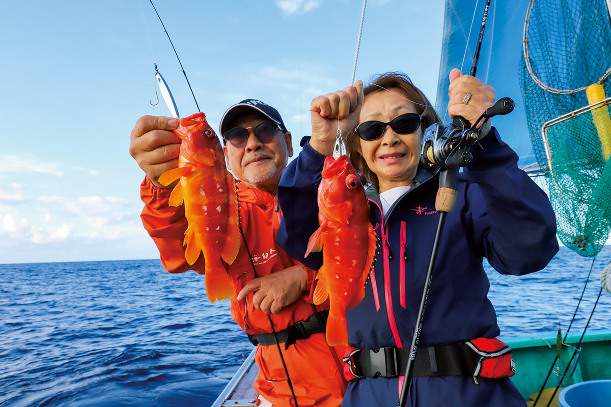 ▲昔は、このように二人そろって磯はもちろん船でも様々な釣りを楽しんでいた。ママさんは病気のため10年以上も釣りから遠ざかってしまっていたが、今回久しぶりに船に乗り、初めてとなるスーパーライトジギングにチャレンジした。