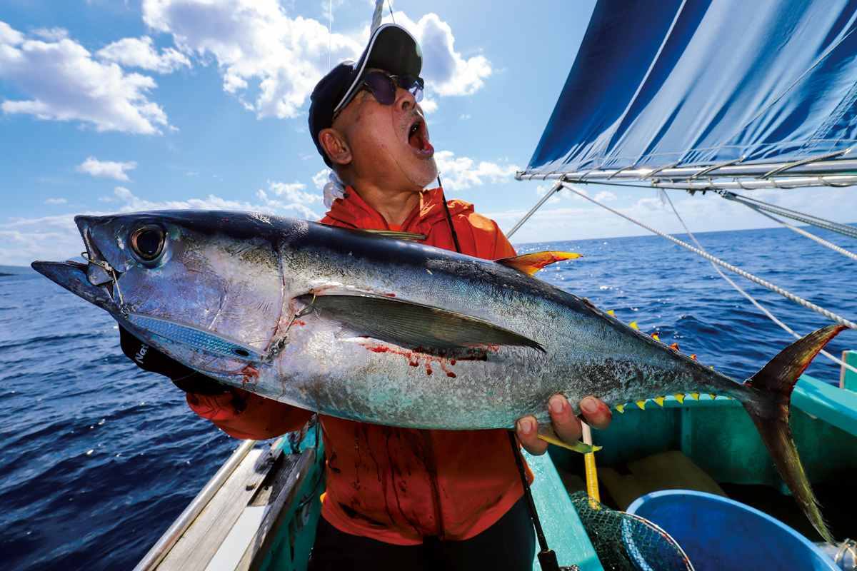 リールを巻くのがままならない彼女を叱咤激励しながら、30分ほどのやり取りで浮き上がったのが、8㎏を超えるキハダマグロだった。