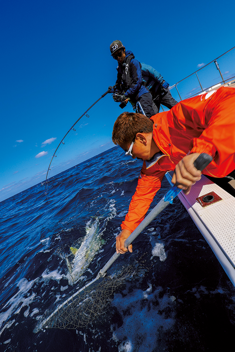 絶対獲る。佐野は力を振り絞ってポンピングを始めた。そして何度も何度も突っ込みを交わし、ついに朝長船長の差し出すネットにその巨体が収まった。