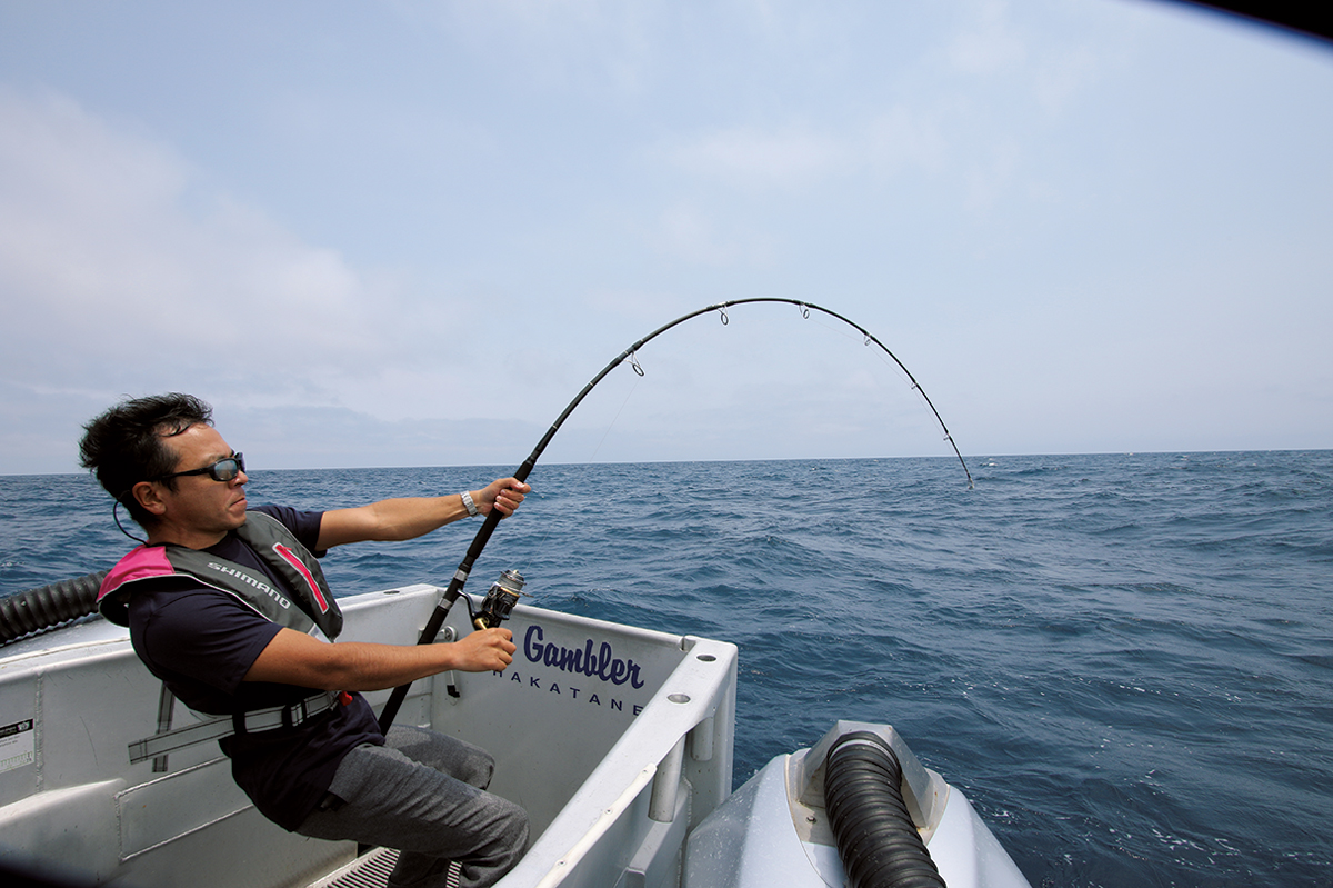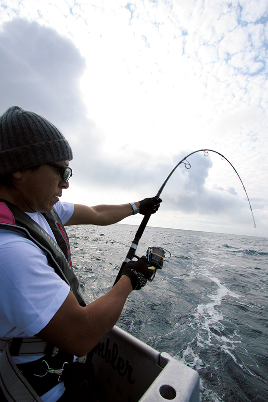 ▲常に安定したファイトをみせる小谷さん。このような大型魚との経験が、自身が操船する遊漁船・ノアマリンでも役立つ違いない。