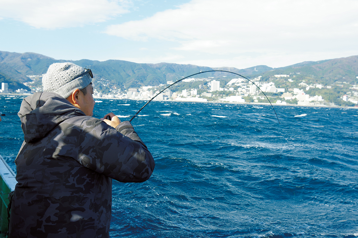 釣り場は中深海ジギングのフィールドとして、近年注目度の高い真鶴沖。伊豆半島の東海岸に突き出した真鶴半島は、先端部にヒラスズキの名ポイント『三ツ石』があり、それを挟んで小田原側と熱海側の広い範囲に好スポットが点在する。急深な地形ゆえ、陸地からそれほど遠くないエリアで多くの釣りが成立する。